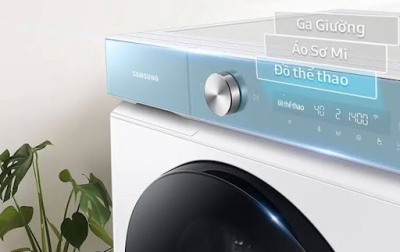 Máy giặt AI hiện đại tự phân tích khối lượng đồ, tối ưu chu trình giặt, tiết kiệm điện nước, chăm sóc quần áo thông minh.
